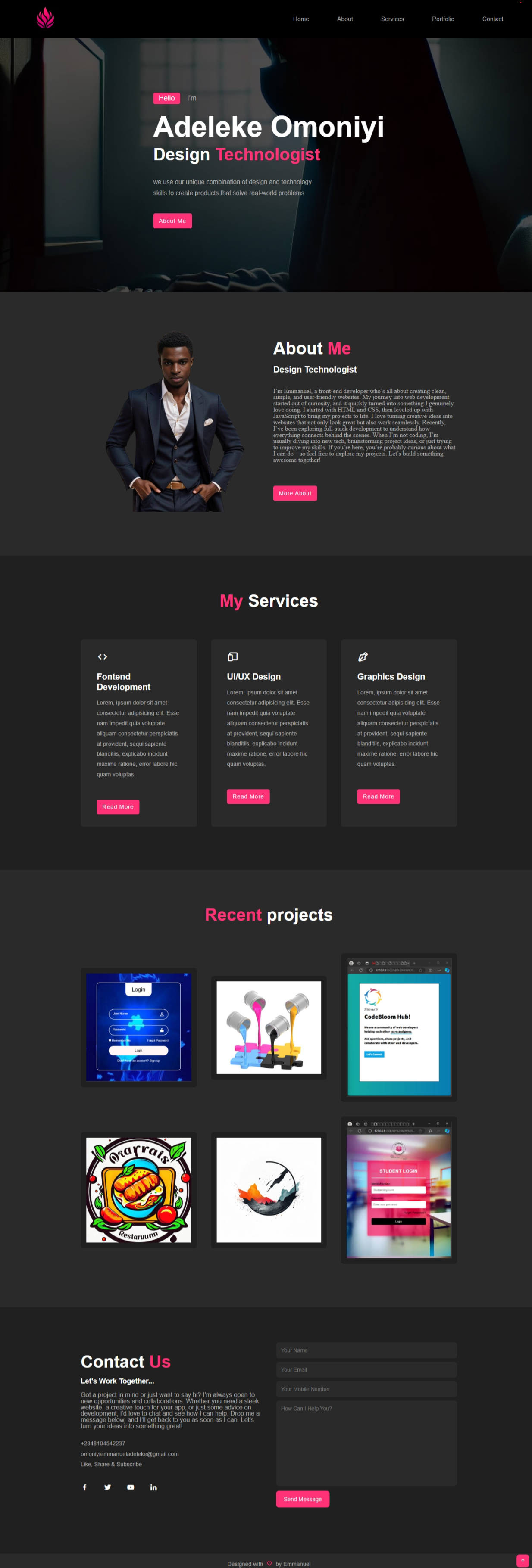 I’m Emmanuel, A frontend developer passionate about building clean, responsive websites that deliver great user experiences. I'm currently expanding into full-stack development to offer complete web solutions. From custom code to WordPress sites, I bring ideas to life with modern design and efficient functionality!
